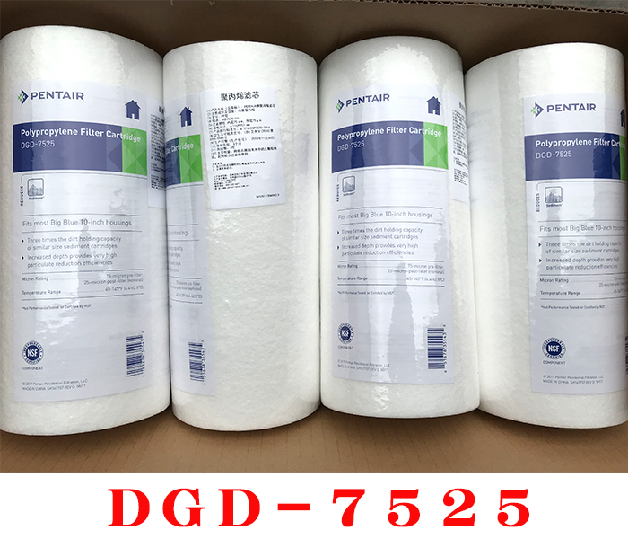 DGD系列滤芯是由100%PP棉由外而内呈梯度密度熔结而成。 适用于PENTEK品牌的BB系列滤壳,它具有极强的抗化学和细菌污染性。 它的纳污能力是标准滤芯的3倍。 巨大的直径,提供了更深的过滤路程,是标准滤芯的233%,使其具有更好的过滤 效果和使用寿命。 它是住宅、 农村、 市政及商业应用的绝佳首选。 内温度范围:4.4-62.8?C。